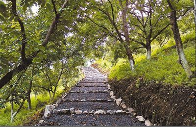光明村核桃林中的休闲步道。记者 徐元锋摄
