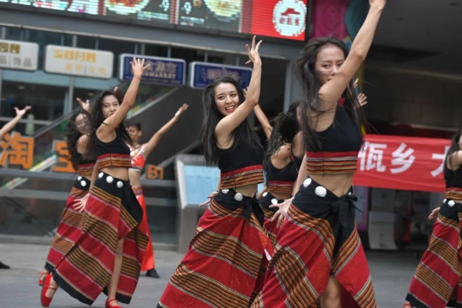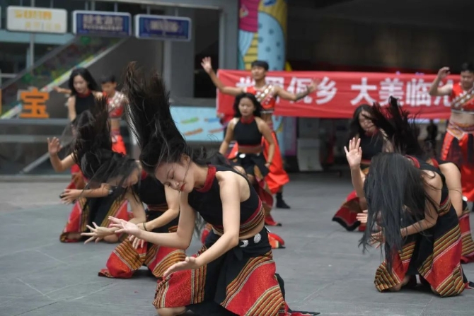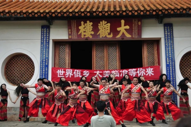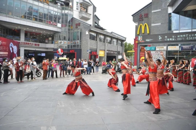 9月16日,由中共临沧市委、临沧市人民政府主办,中共临沧市委宣传部、临沧市文化和旅游局承办的"世界佤乡·大美临沧"文化旅游宣传推介系列快闪活动在昆明老街广场,昆明大观公园大观楼、昆明大观公园无边界水池、昆明大观公园荷花栈道继续开展。临沧市民族歌舞演艺有限责任公司的演员代表临沧市为昆明市民呈现了一段精彩的佤族歌舞表演,让现场的市民、游客深深的感受到了“大美临沧、美在乡间;花开四季、香飘八方”的无限魅力。