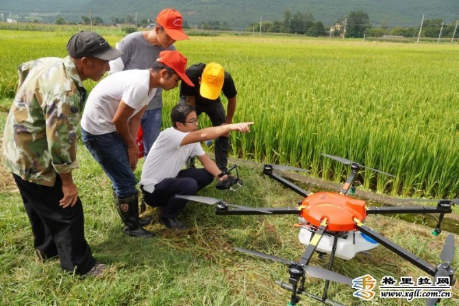 观摩会展示了两款多用途无人机。现场一位大妈说:“政策好,合作社购买无人机还有定额补助,现在实现无人机喷洒农药,以后发展到无人机播种、无人机除草、无人机收割,全部机械化,想想都是美好的。” (香格里拉网 记者杨艳龙 )