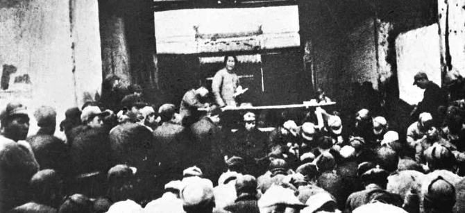 1935年12月27日,毛泽东在陕北瓦窑堡党的活动分子会议上作《论反对日本帝国主义的策略》报告。 新华社发