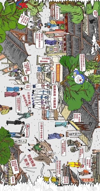日前,一组以漫画形式绘成的昆明老街为背景的《抗疫上河图》画卷,在云南财经大学师生的朋友圈中传播开了。