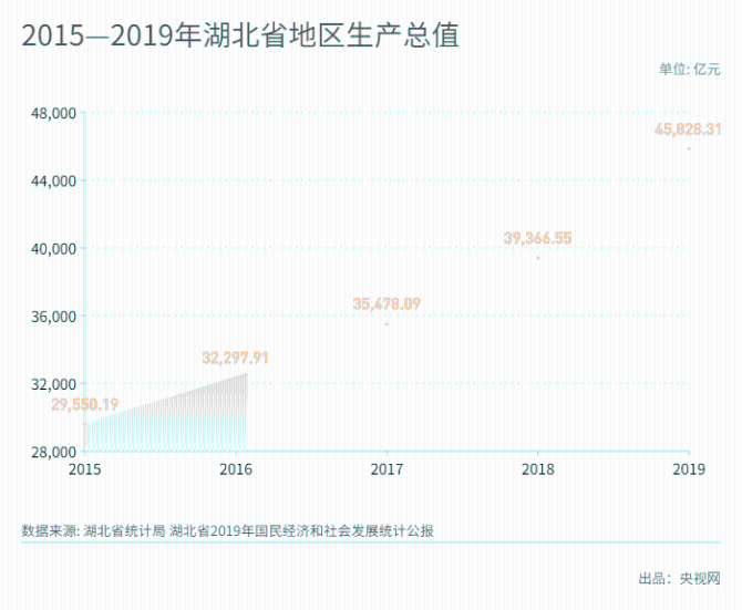 统计数据显示,2019年,湖北省生产总值达45828.31亿元,同比增长7.5%,在中部地区各省份GDP排名第二名,一二三产业的增长率分别为3.2%、8%、7.8%,形势向好。