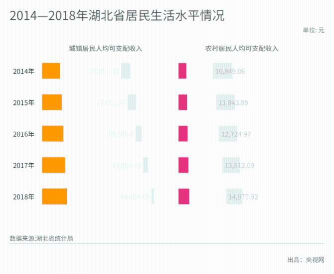 图六:2014—2018年湖北省居民生活水平情况