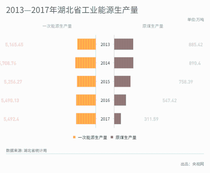 “十二五”以来,在新发展理念的指导下,湖北积极改善能源结构,大力推进节能降耗工作,取得了供保能力显著增强、能源结构不断优化、能源基础设施愈加完善、节能减排效果明显等显著成绩,极大地促进了经济的高质量发展。就能源生产方面,原煤生产量逐年递减,水电等清洁能源生产量呈不断上升的向好态势。
