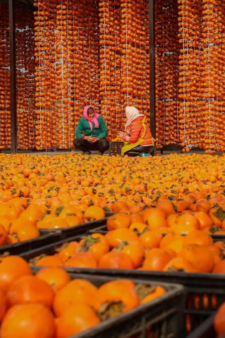甘肃平凉市泾川县柿子丰收场景。摄影/左雪兰