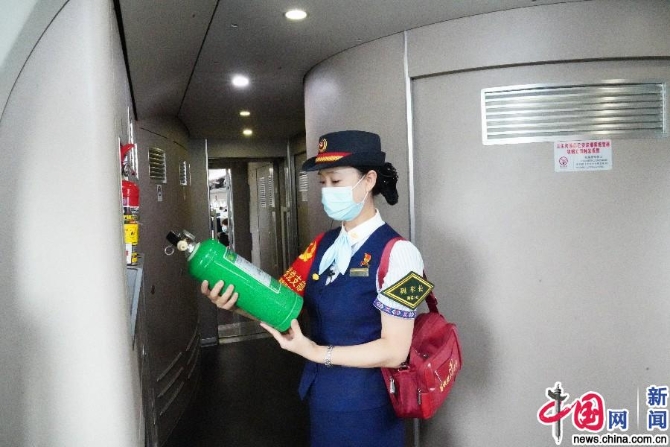 孙雪检查列车上的灭火器。中国网记者 刘维佳/摄