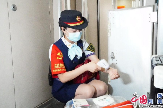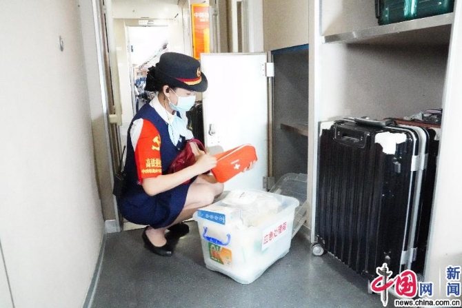 孙雪整理列车上的防疫物资。中国网记者 刘维佳/摄