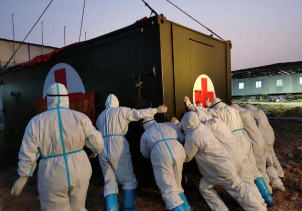 科研人员在火神山连夜展开装备 邵龙飞 摄