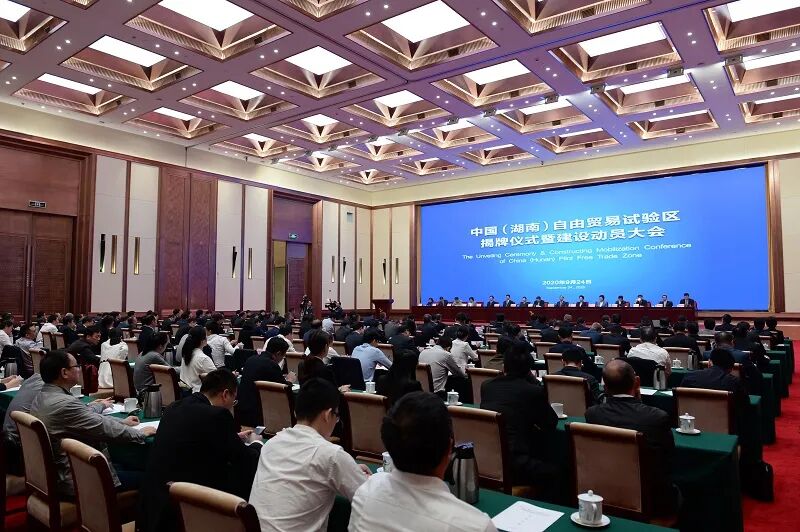 中国(湖南)自由贸易试验区揭牌仪式暨建设动员大会现场。新华社 记者陈振海/摄