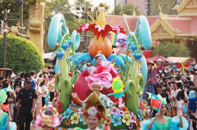 南宁方特东盟神画则充分结合东南亚风情,在长假期间隆重举办“方特第三届东盟文化节——老挝国花盛典”。重金打造的十里《花漾画境》由上万朵老挝占芭花簇拥成一片“花海”,与镶在画框中的东盟美人“人面桃花相映红”。还有东南亚舞者倾情演绎的“东南亚风情盛典”——流传千年的祭月盛典,让游客不出国门沉浸式感受东南亚特色风情。此外,南宁方特还在国庆期间荟萃东南亚十国特色美食,让游客畅享舌尖上的“东南亚”之旅。