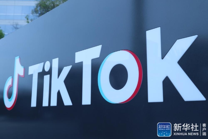 ↑这是8月21日在美国加利福尼亚州洛杉矶县卡尔弗城拍摄的TikTok公司标志。新华社发