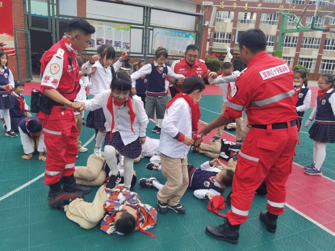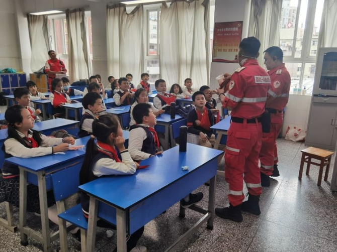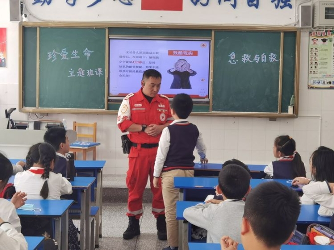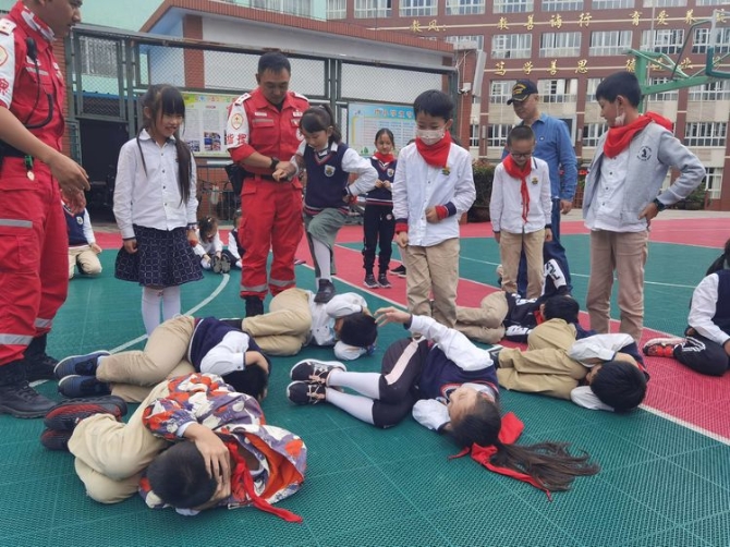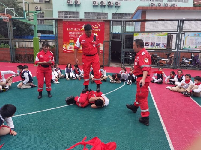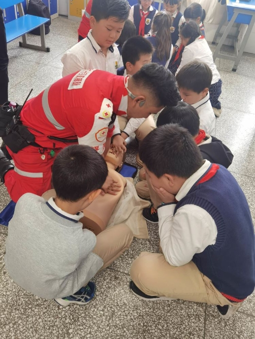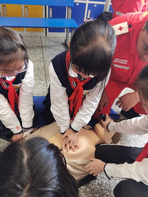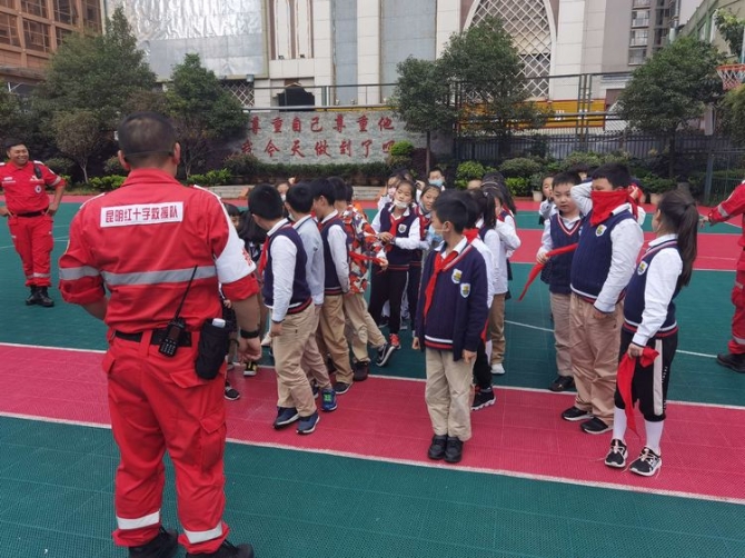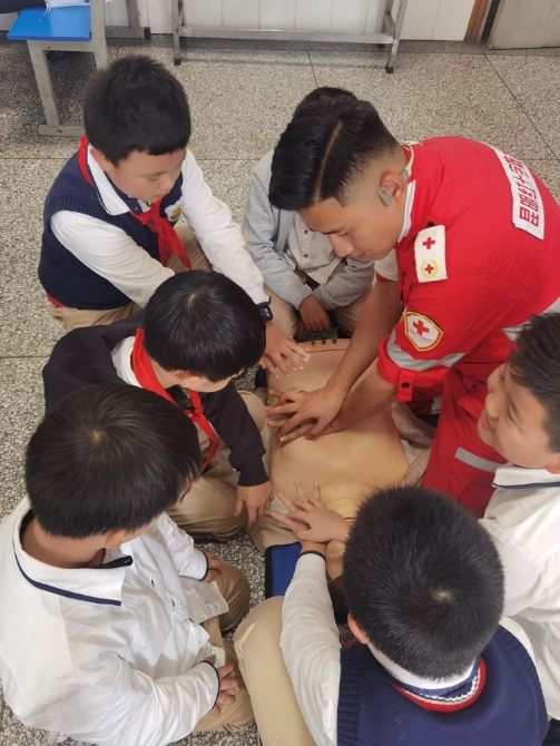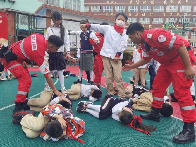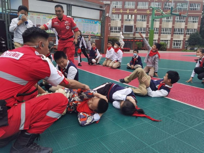 为学习和实践应急救护知识,增强师生自救互救意识和技能,保障师生的生命安全和身体健康。2020年9月25日下午,昆明市红十字会备灾救灾服务中心、应急救护培训中心主任、救援队政治教导员岳巍及昆明红十字救援队搜救组潘禹诚,昆明红十字督察组刘易玮,昆明红十字秘书组张小梅一行为四5班开展了主题班队课,进行应急救护知识普及培训。通过生动的理论学习,惊心动魄又有条不紊的现场实操培训,同学们获益良多。