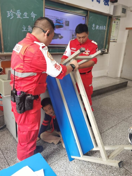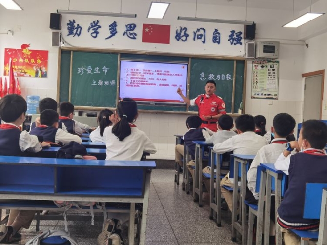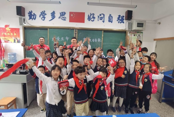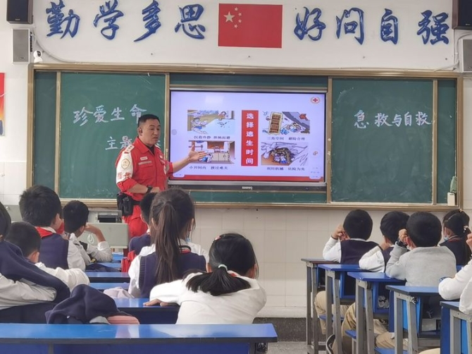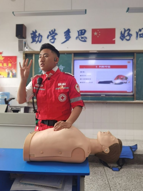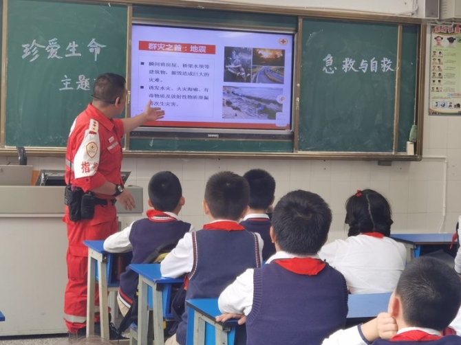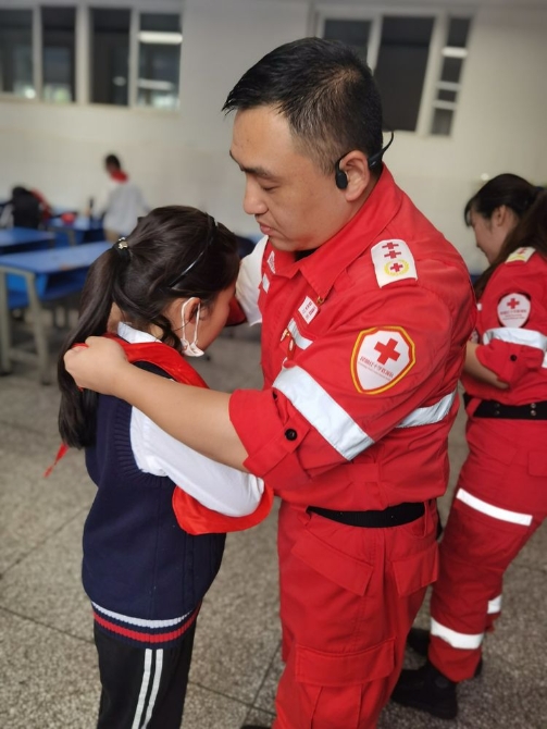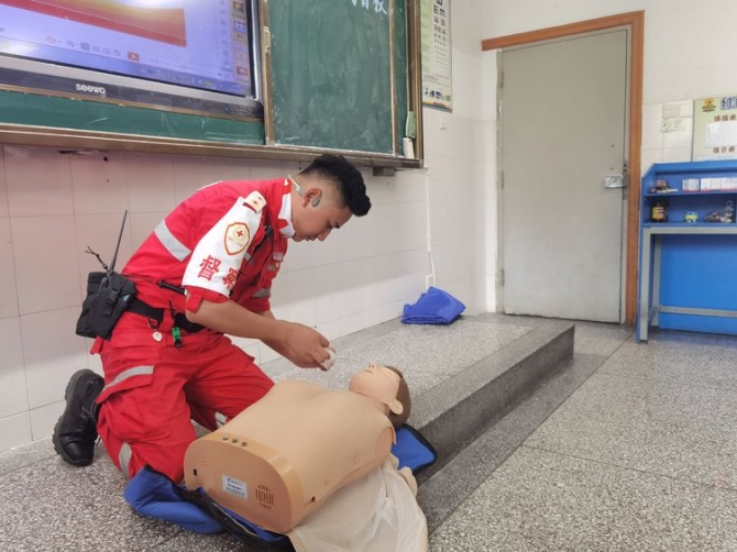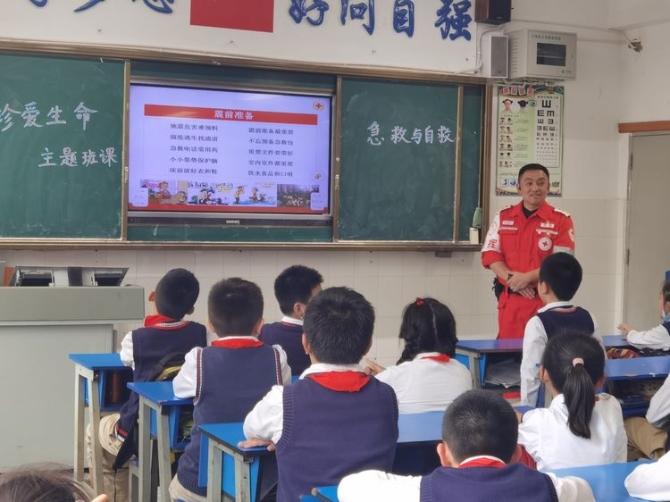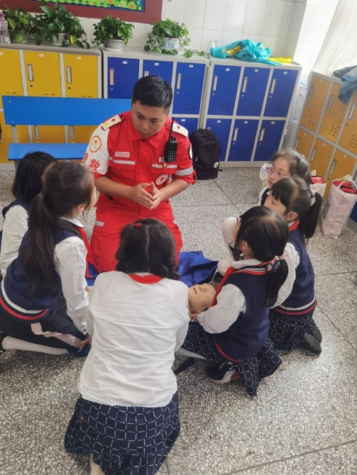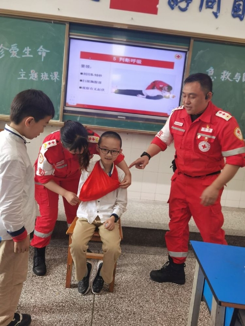 为学习和实践应急救护知识,增强师生自救互救意识和技能,保障师生的生命安全和身体健康。2020年9月25日下午,昆明市红十字会备灾救灾服务中心、应急救护培训中心主任、救援队政治教导员岳巍及昆明红十字救援队搜救组潘禹诚,昆明红十字督察组刘易玮,昆明红十字秘书组张小梅一行为四5班开展了主题班队课,进行应急救护知识普及培训。通过生动的理论学习,惊心动魄又有条不紊的现场实操培训,同学们获益良多。