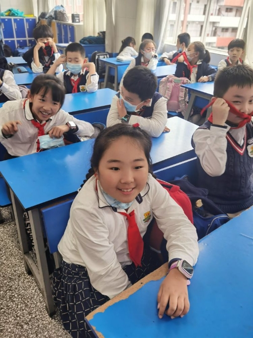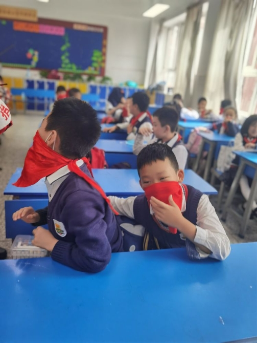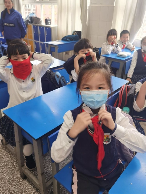 红领巾当做三角巾固定折肢