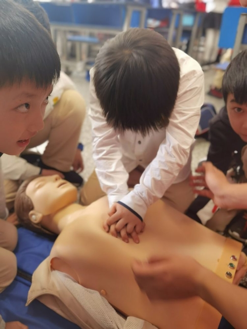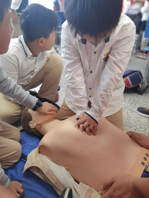 心肺复苏和人工呼吸急救知识问答和讲解,同学们都积极参与。