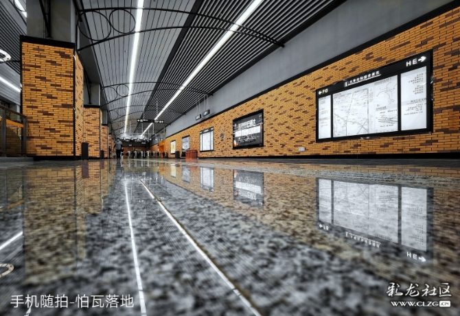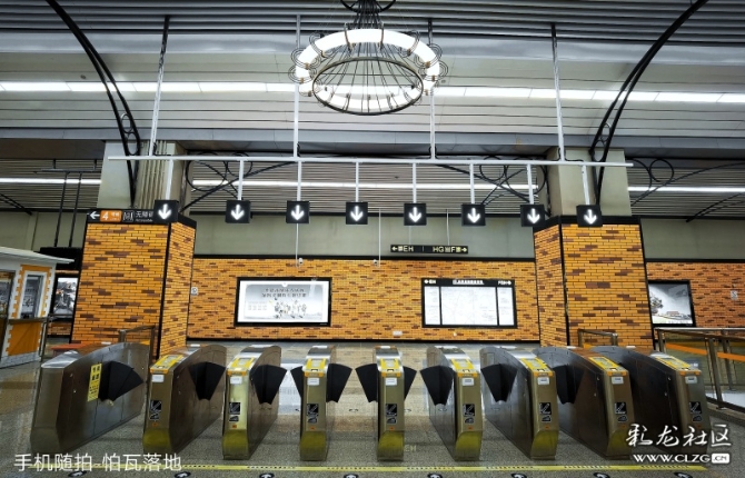 菊华站,以火车车轮、米轨小火车车厢为主要元素。天花个性区采用铝合金板材设计成火车车轮环环相扣的形象,寓意着永动的历史发展车轮滚滚向前。