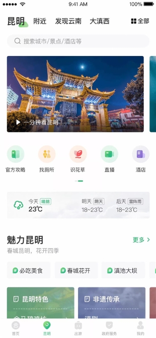 “4.6版App的首页新增‘二楼’功能,用户下拉就能查看云南的精美视频。同时,头图也由静变动,通过云南的美景美图、动态视频,让用户第一眼就能看到云南的美。““游云南”相关人士说,同时,功能区由原有的单行增加为双行,让用户使用率高的更多功能模块得以在首页展示,方便用户第一时间获得景区预约、看直播、景区导览、交通出行等服务。同时,在原有目的地内容展示的基础上,新版App围绕不同出游需求,通过提供更深层、面面俱到的目的地服务,为用户提供相应的旅游解决方案。