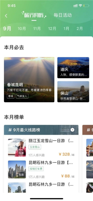 “云南怎么玩体验最好?去哪里能查到最全面的云南节庆活动?”……新版App新增的玩乐美食文化内容,并重构旅行月历首页,“按月分发玩乐美食文化内容,按日分发活动节日赛事内容”,让用户能快速了解当月、当日云南哪里最好吃、哪里最好玩。“精品路线”板块,也围绕方便用户进行优化升级,不仅展示云南旅游的核心玩法,也为用户打造云南度假旅游一站式解决方案。