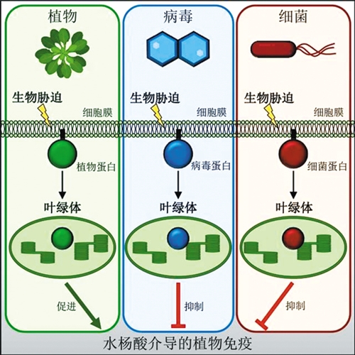 病毒和细菌的效应蛋白挟持植物中一条细胞膜到叶绿体的抗病信号途径,以抑制植物免疫。 (资料图片)