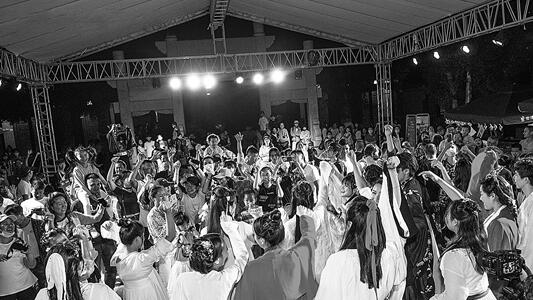 10月3日在建水举办了传统文化体验、不倒翁、汉服巡游等活动,深受游客喜爱。3日晚,建水潮玩夜活动在临安府署举行,吸引上千名游客到场狂欢,现场汉服文化展示、装置艺术打卡、游戏互动、音乐轰趴、花式调酒等让大家过了把国潮瘾,同时还有朱家花园文创、益华茶、文化旅游节吉祥物欢乐橙子等供大家采买和互动。当晚建水潮玩夜活动吸引了超过2000名游客入园。