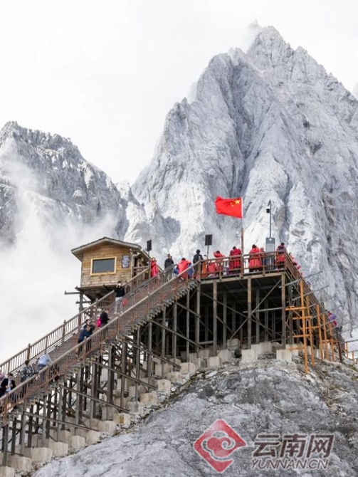 国庆中秋“喜相逢”,云南各地景区景点也迎来了旅游高峰。据玉龙雪山省级旅游开发区管理委员会相关负责人介绍,10月1日至7日,景区日均接待游客近2万人,冰川公园海拔4506米观景台的8面国旗,成了游客争相合影的热门打卡点。
