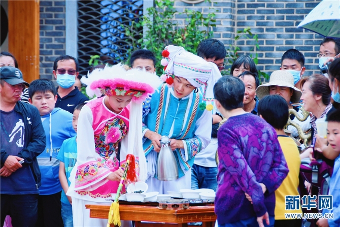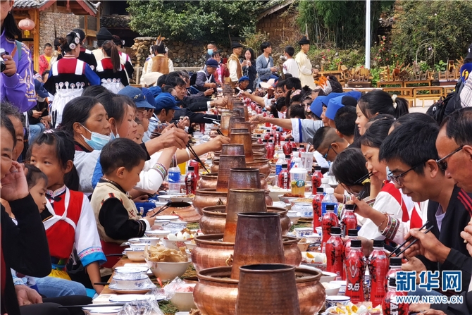 丽江市玉龙县白沙镇玉湖村长街宴活动(10月6日摄)。新华网 和红艳 摄