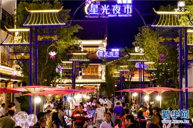 玉溪澄江抚仙湖·广龙小镇的抚仙湖·星光夜市吸引众多游客。新华网发(供图)