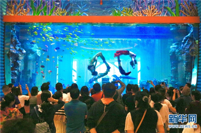 玉溪澄江云南寒武纪小镇欢乐大世界海豚湾酒店的美人鱼表演。新华网发(供图)