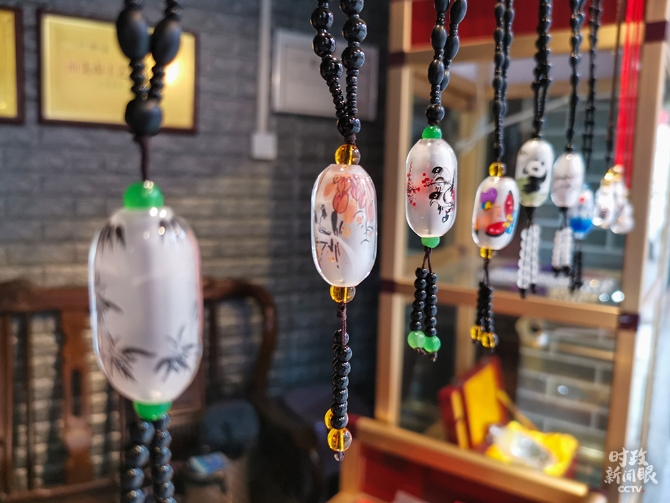 △汕头瓶内画(粤派)创作以色彩艳丽和装饰风格著称。(总台央视记者李晓周拍摄)