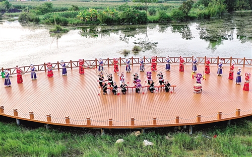 近年来,广西都安瑶族自治县大力实施“旅游旺县”发展战略,通过发展全域旅游带动2万多名建档立卡贫困群众脱贫致富,占全县贫困人口数的11.48%。图为当地群众在进行民俗表演。高东风摄(中经视觉)