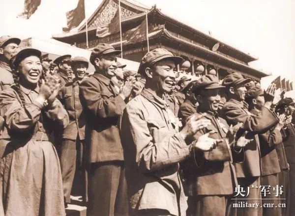 1953年阅兵,在观礼台上的中国人民志愿军国庆节归国观礼代表团代表 (央广军事)