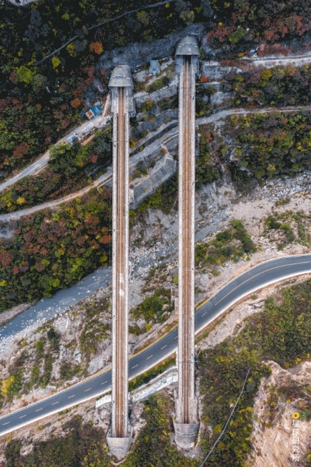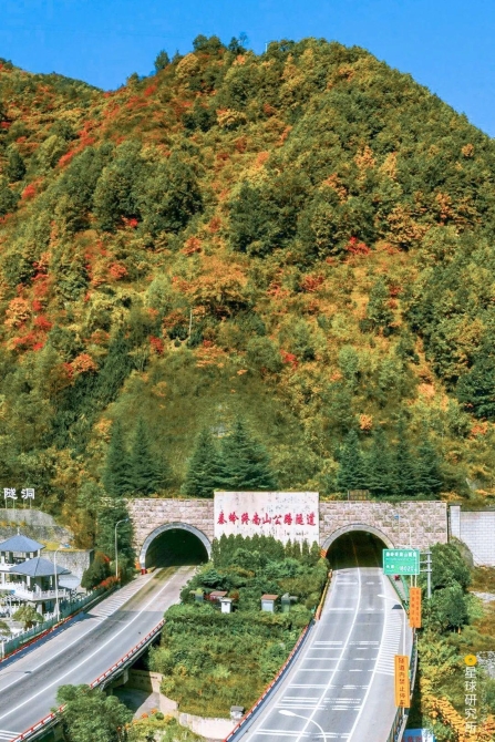 (请横屏观看,三座隧道组成的秦岭隧道群,摄影师@魏炜)