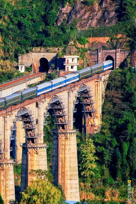 (一堵直立的墙体便是洞门,称为端墙式洞门,也是最常见的洞门,下图为成昆铁路沿线隧道,摄影师@李昌华)