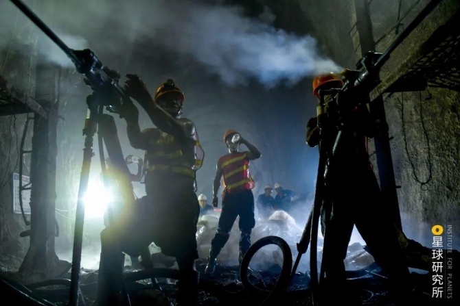 人们通过凿孔爆破和挖掘