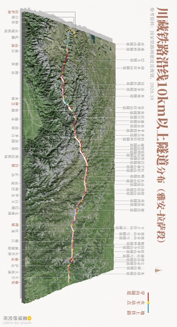 (请横屏观看,川藏铁路沿线10km以上隧道分布[雅安-拉萨段],制图@陈志浩&王申雯/星球研究所)