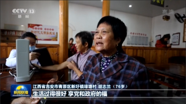 江西省吉安市青原区新圩镇璋塘村 胡志兰(76岁):现在吃饭有政府管,吃得很好,有病医生会上门给我们看,现在生活过得很好,享党和政府的福。