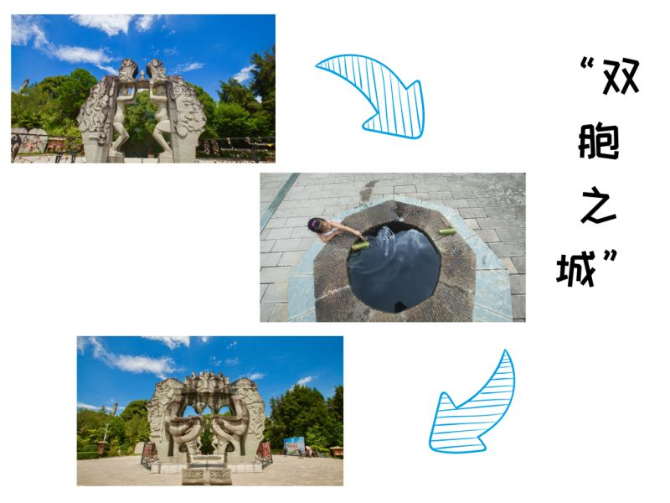 在墨江,全县有1200多对双胞胎,生活在北回归线上的就有600多对。除此之外,在动植物中也存在着神奇的双生现象。双子星广场上的主体雕塑是一对年轻的哈尼族夫妻,左手边的哈尼妇女肚子突起。夫妻俩弯曲双腿、手持贡品,他们正向天神祈求,保佑他们的双胞胎平安降生。