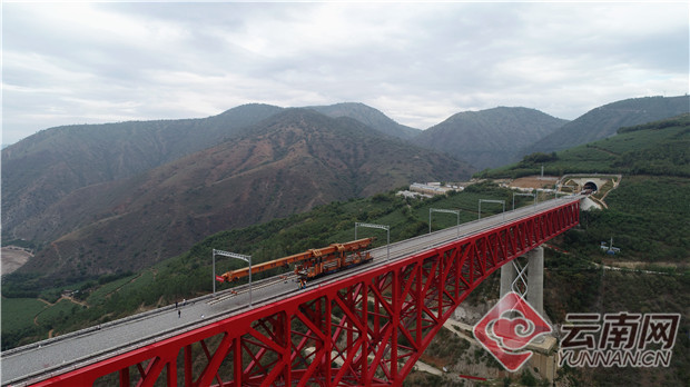 10月29日,随着一节长25米的轨排缓缓落在元江双线特大桥上,标志着中铁一局玉磨项目部铺轨顺利抵达世界跨度最大的上承式连续钢桁梁铁路桥—元江双线特大桥。