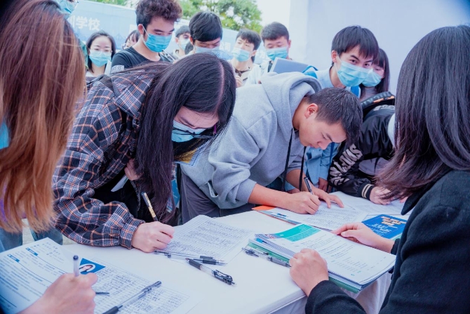 招聘现场井然有序、如火如荼,大部分是即将毕业的各高校学生,他们在各个招聘展区之间穿梭,仔细了解用人单位的招聘需求,认真地填写简历,渴望找到一份合适的工作。
