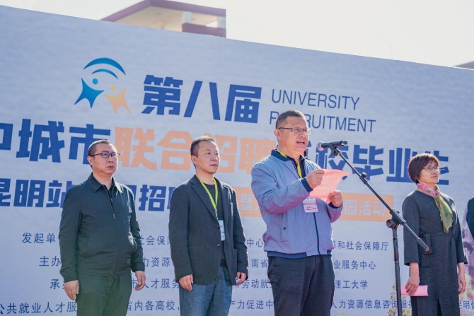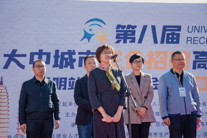 启动仪式上,昆明市人社局副局长赵磊、云南省大中专毕业生就业服务中心主任周舟、人社部全国人才流动中心副书记宋小燕上台致辞。