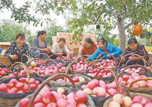 陕西洛川果农在分拣包装苹果。 李彦东摄(中经视觉)