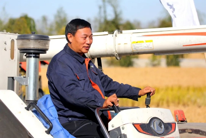 10月27日,全国人大代表、辽宁省盘山县太平凯地农机服务专业合作社理事长郭凯高兴地告诉《中国人大》记者:“今年稻子的收成不错,现在正在对合作社经营的12600亩水稻进行机械化收割,预计产出8000吨水稻。今年又是一个丰收年!”