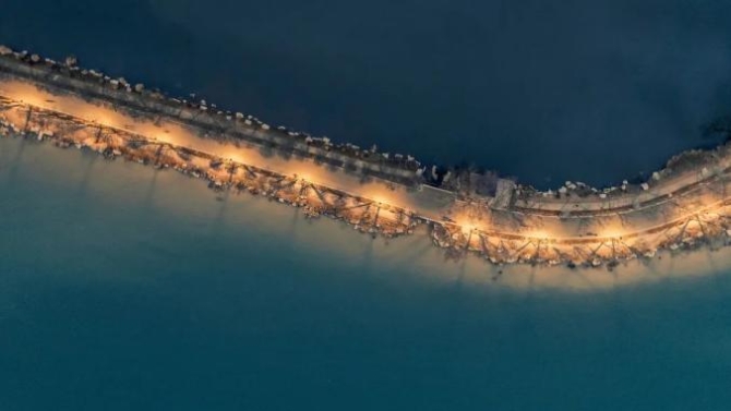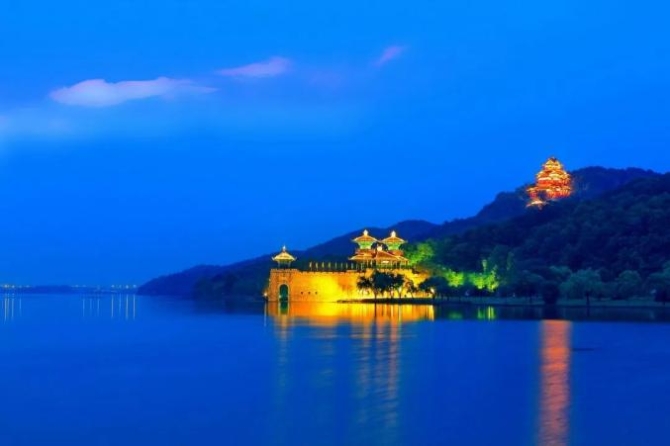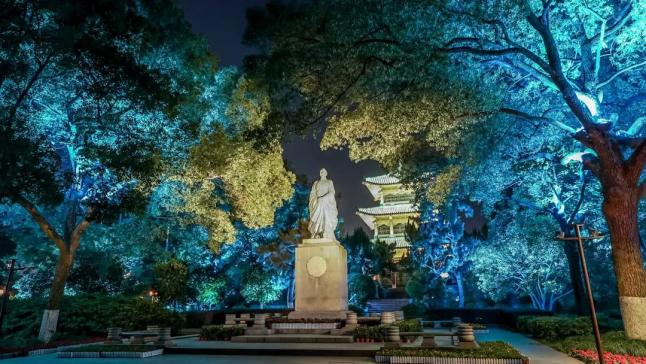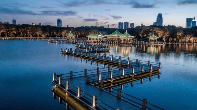 位于城区最大的湖——东湖,夜色中好像多了一副斑斓的灵魂,当灯光亮起,则是这颗宝石最闪耀的时刻。