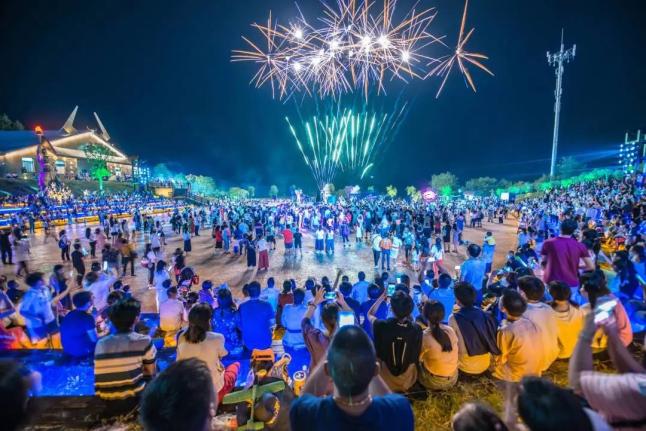 夜幕降临,在炫彩灯光的装点之下,抚琴仙子、黄鹤仙子、水雾、激光齐上阵,讲述仙鹤缘起的传说,这是《夜上黄鹤楼》,鹅池光影流动,引人入胜。