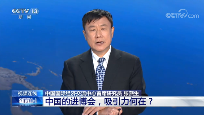 张燕生:习近平总书记讲,这次的进博会是一次全球贸易盛会,朋友踊跃来了,更多还是跟中国朋友一起,就是在这个全球百年未有之变局和新冠世界蔓延的形势下和中国朋友共享机会,共享成果,共享发展。