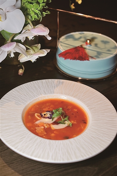 能为人带来温暖与用餐之愉悦的,都是好汤,不管是中式汤或者西式汤。卓美亚酒店行政总厨Alonso曾走过多国多地,更在中国沉浸了多年,深谙中国口味,能在中西之间找到最佳的风味融合点。以他最近出品的意大利蔬菜培根汤为例,汤的酸度恰恰好,不似原版的酸,汤中多了一份肉味,不至于寡淡。这是在不断调试过程中形成的口味。意大利蔬菜汤是用洋葱、蒜蓉、番茄膏、红腰豆、白蚕豆、红萝卜、西芹等来熬煮的,且会加入炒出油分的腌肉,带来油脂之香。但不同在于,Alonso还用上中式的鸡汤来调和,赋予了蔬菜汤更加鲜美的肉味。此外,还有一勺罗勒酱的风味加持。(文、图/广州日报全媒体记者曾繁莹 通讯员张继)