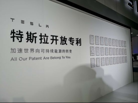 新能源车代表品牌特斯拉,则再一次全方位展示多款车型。在中国实现量产并销售火爆,去年被围观的Model 3及Model S车,至今不算稀奇。特斯拉的另类展示却颇可观:特斯拉开放专利,整整一面墙,一一列举可以开放的专利技术,目标清晰:加速世界向可持续能源转变。