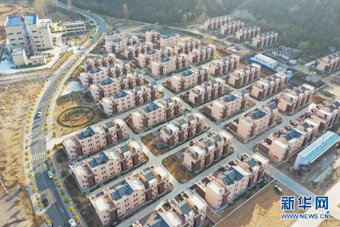 河北省阜平县史家寨易地扶贫搬迁安置区(10月29日摄,无人机照片)。 新华社记者 朱旭东 摄