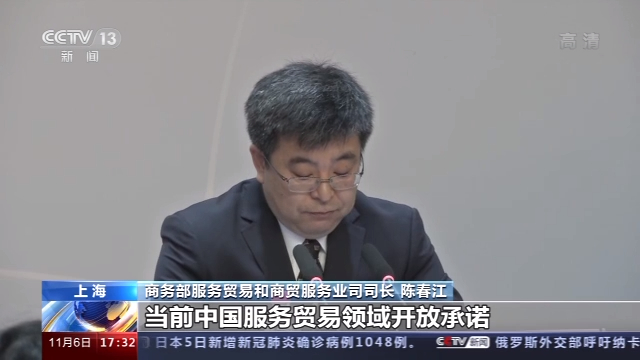 商务部服务贸易和商贸服务业司司长 陈春江:目前,中国服务贸易领域开放承诺已经全部履行完毕,在世贸组织分类的12大类服务贸易部门的160个分部门中,中国开放了9大类的100个分部门,接近发达国家成员平均承诺开放108个分部门的水平。
