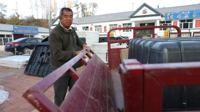 △近日,老郑在忙着帮村民运送卫生厕所设备。